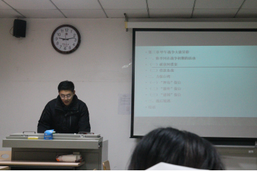 12月28日,3044am永利官网历史研究所在学院路校区新一号楼C101教室里举办了2017年度的“史学沙龙”。历史所的学术沙龙是旨在提高研究生培养质量,特别是强化学生论文写作能力的一种小型学术活动。这次提供论文并主讲的分别是历史所2015级的金鑫、孙胜楠和张天驰三位学生,给予点评的是李自典、赵国辉、刘丹忱、姜金顺、郑云艳五位老师,其中李自典副教授是来自北京联合大学文理学院的老师。历史所2016级和2017级的十几名硕士研究生参加此次活动。每位同学的报告流程主要是两个阶段:先通过ppt展示讲解自己的报告内容,再进行老师评价及同学提问环节。
